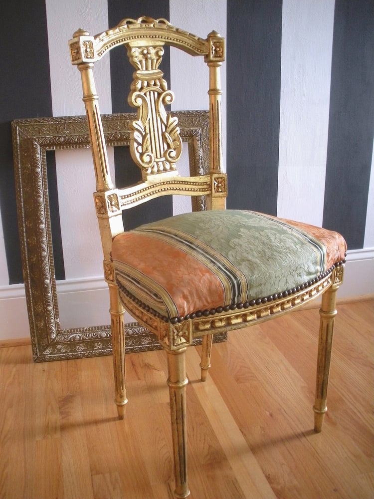 …a beautiful "belle époque" antique salon chair…lyre back…lovely gilt finish…upholstery in shades of apricot…green…gold…sturdy…in very good condition…wonderful accent piece in any room…very special…